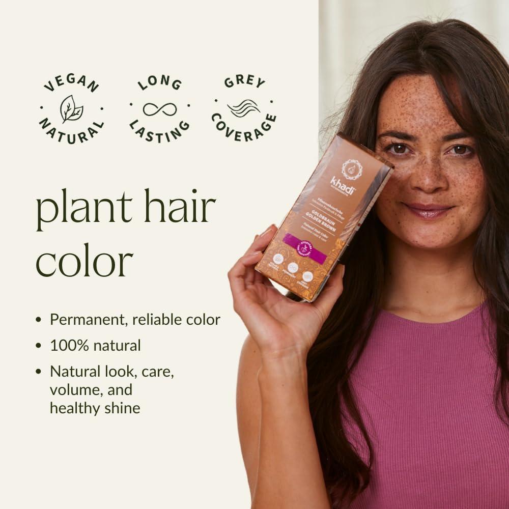 khadi GOLDEN BROWN Natural Hair Color - Hair Color for shimmering amber to velvety shiny golden brown - 100% herbal & natural - 3.5 oz